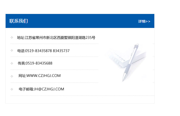傳真:0519-83435688    郵編:213135    網址:WWW.czjhgj_com.huaweielab.com    電子郵箱:JH@czjhgj_com.huaweielab.com